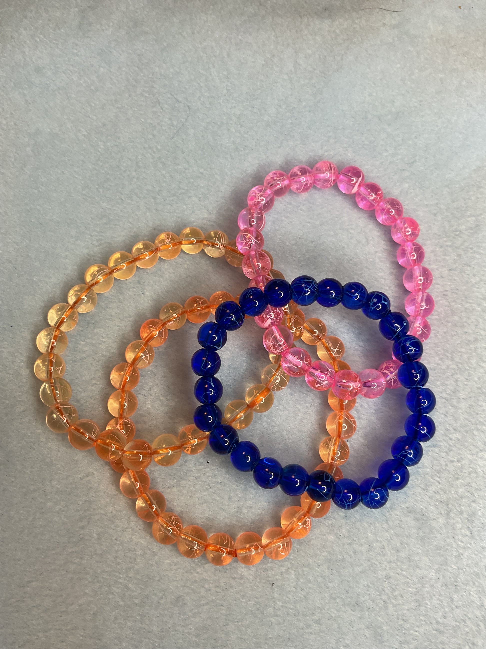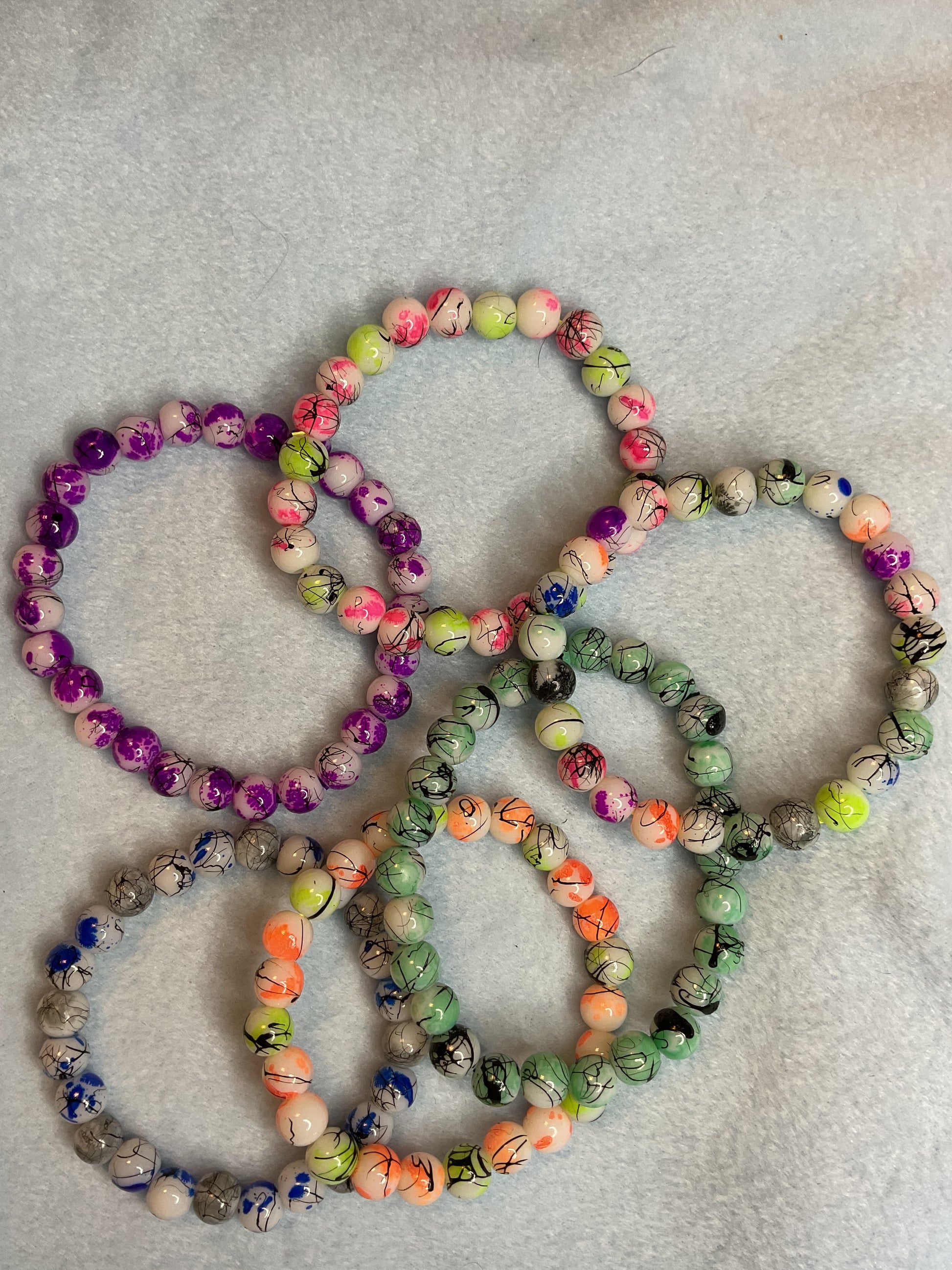 Graffiti range of bracelets using 6mm clear and opaque graffiti style glass beads